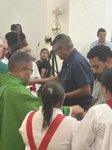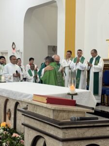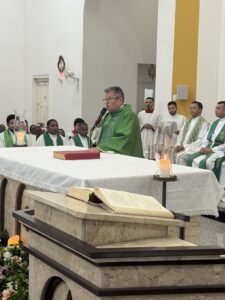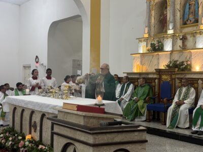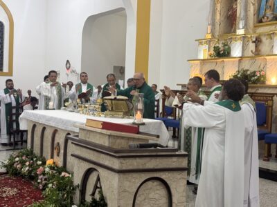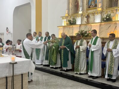 Tomou posse na noite deste sábado (07) em missa solene na igreja matriz de Valença o padre Antonio Barbosa Ferreira, como mais novo pároco da paróquia de Nossa Senhora do Ó e Conceição. A celebração contou a presença de vários padres de outras paróquias e foi presidida pelo Vigário Geral da arquidiocese de Teresina, padre Amadeu Matias, que representou o arcebispo de Teresina, Dom Juarez Marques e contou com um bom público presente e caravanas vindas de outras cidades como Picos e Dom Expedito Lopes, terra natal do clérigo, além de uma grande caravana vinda da paróquia de Nossa Senhora da Paz do bairro Vila da Paz em Teresina, última paróquia em que o padre trabalhou.